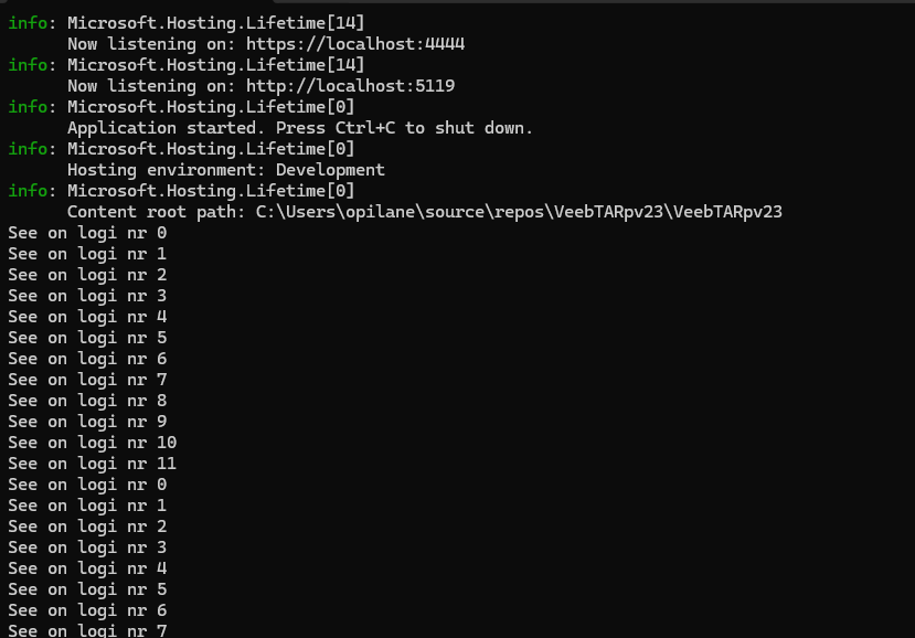 "applicationUrl": "https://localhost:4444;http://localhost:5119","Tulemus: