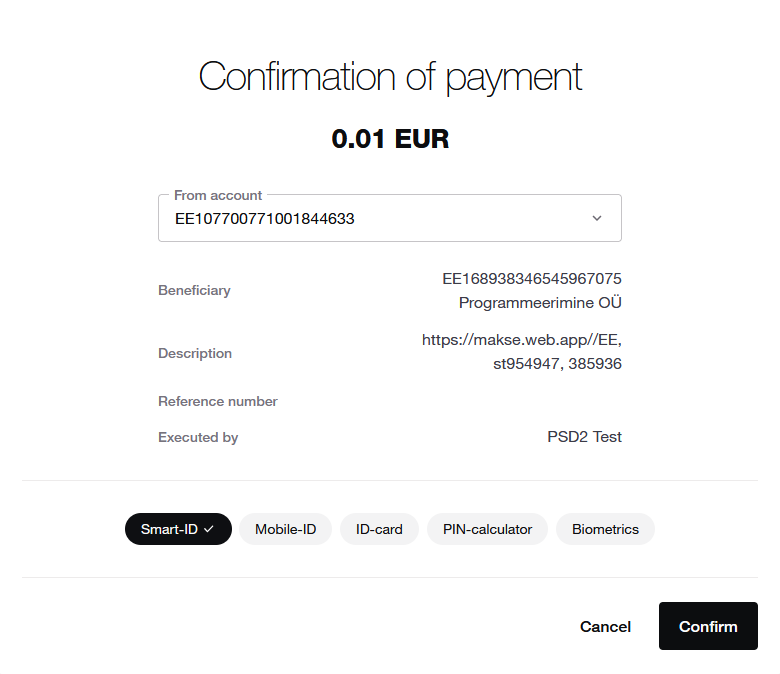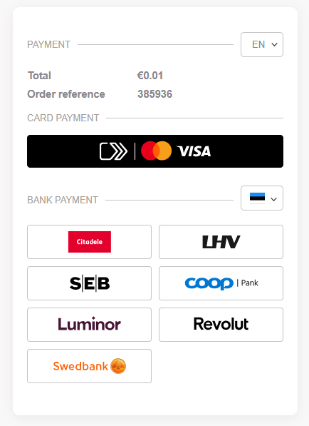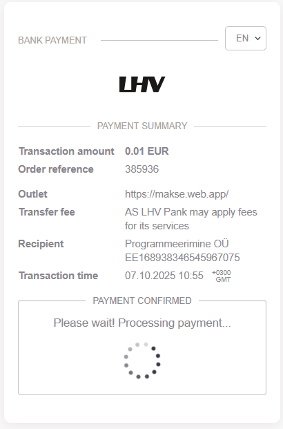 Saame näiteks sellis URL: https://payment.sandbox.lhv.ee/lp/q2zaxyd8q6/nXjxSePYOG